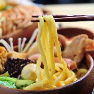 ➢鍋燒麵:湯頭分日式、洋蔥咖哩、泰式酸辣、重慶麻辣、南洋沙茶、韓式泡菜等口味,而且也有6~8種的火鍋料、豬肉片、青菜、金針菇,重點還可以麵類四選一,平價又好吃!